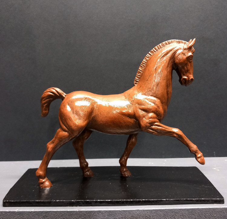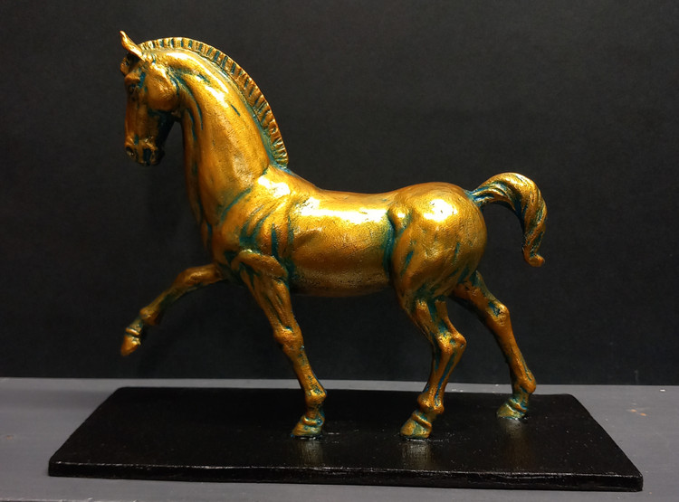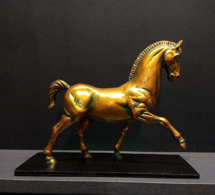 مجسمه دستساز (مدل خمیری اوّلیه با دست ساخته و قالبگیری شده .. ❌️بدون استفاده از پرینتر سه بعدی❌️) دکوراتیو اسب از جنس پلیاستر با طراحی منحصر به فرد و در سه رنگ سفید، پتینه طلایی و قهوهای ساخته شده است. این اثر هنری گزینهای عالی برای دکوراسیون داخلی و هدیه خاص است. با کیفیت بالا، زیبایی و جذابیت را به فضای خود اضافه کنید.